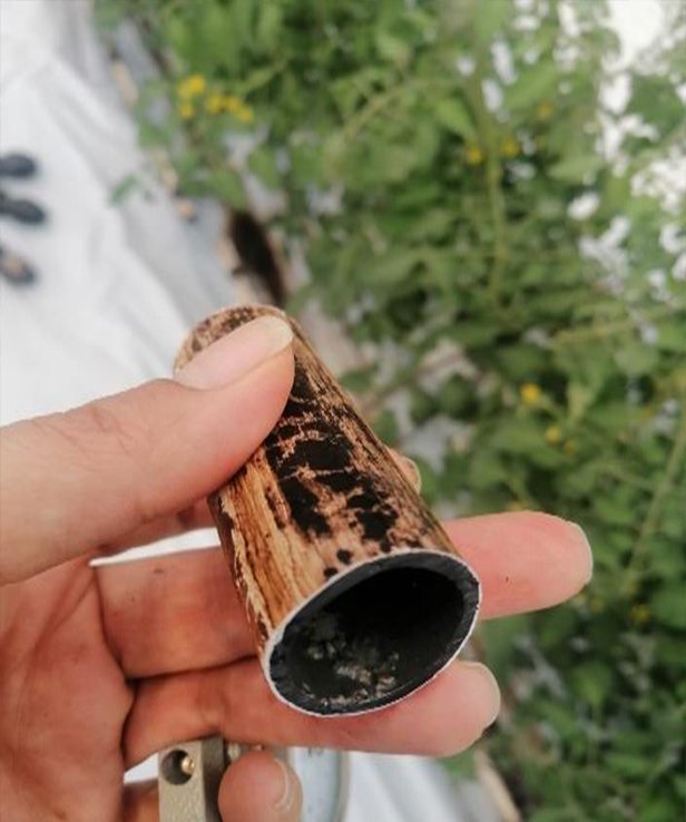 Se muestran imágenes reales donde se hace evidente las grandes mejoras en el suelo Máxima floculación del suelo dando más humedad mejor aprovechamiento del agua pues se reducen los tiempos de riego no hay desperdicio del agua, además no se taponean las tuberías o cintillas por el sarro, mejor aprovechamiento de los nutrientes y un cultivo mucho más sano.